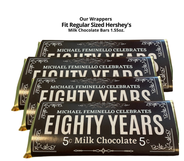 Our Candy Bar wrappers are made to fit Hershey's Milk Chocolate Bars and are made for any event.